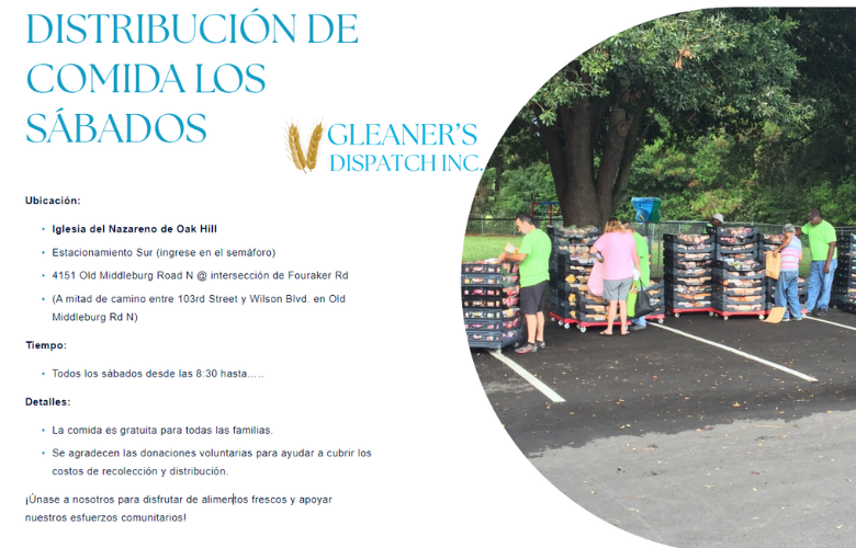La distribución de alimentos comienza a la 1:00 p.m. y finaliza a las 2:30 p.m.