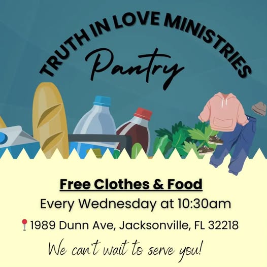 La despensa de alimentos Jan Jirousek en LSS , ubicada en 4615 Philips Highway Jacksonville, FL 32207, actualmente distribuye alimentos en la parte trasera del edificio. Se aceptan personas que se acerquen a la despensa sin cita previa y los clientes pueden visitar LSS para obtener alimentos hasta una vez al mes. Traiga su identificación. El horario actual de la despensa es de lunes a viernes de 10 a. m. a 12 p. m.
