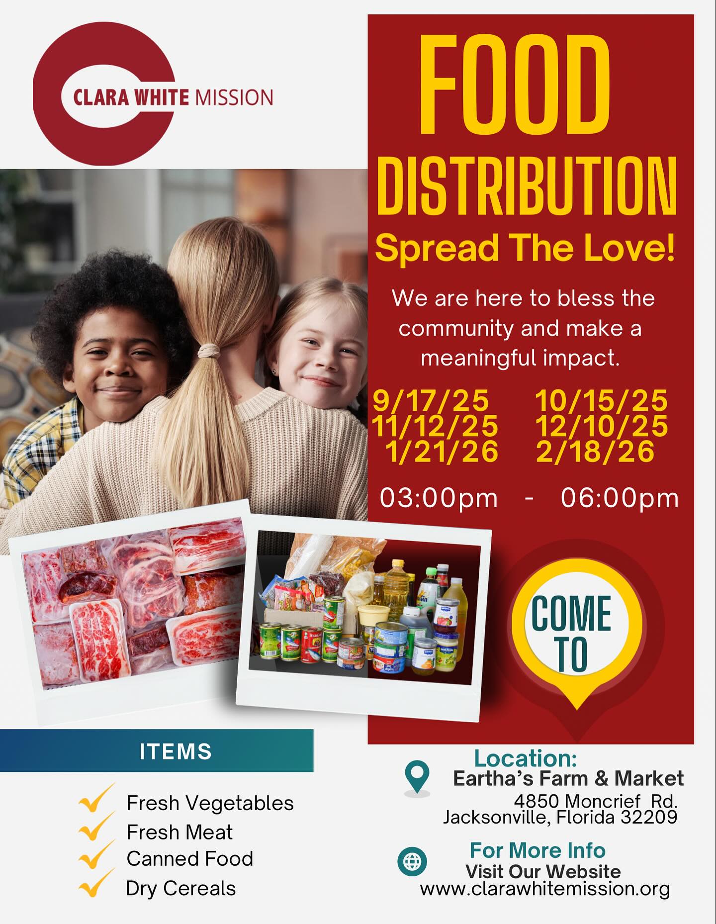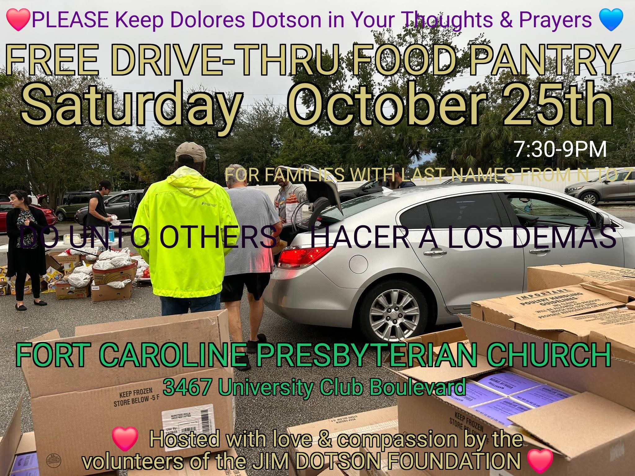 Bienvenidos a la comida desde su auto o a pie. Es FCFS. Solo venga en su auto e inscríbase.